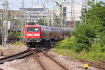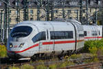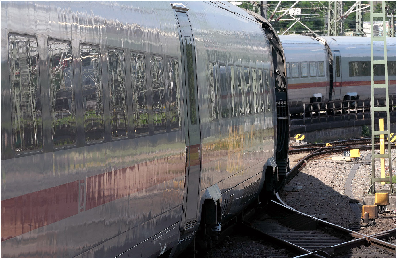 Die Waggons des ICE 4 schlängen sich über die kurvenreiche Gleisführung zu Gleis 15.