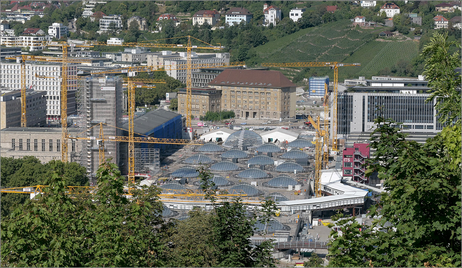 Hbf Stuttgart__Alt vor neu: 163 008-6 beim Rangieren vor dem Zentral-Stellwerk, das ca. 1 Jahr später in Betrieb ging und die bis dahin aktiven 12 Stellwerke ablöste.__14-06-1976