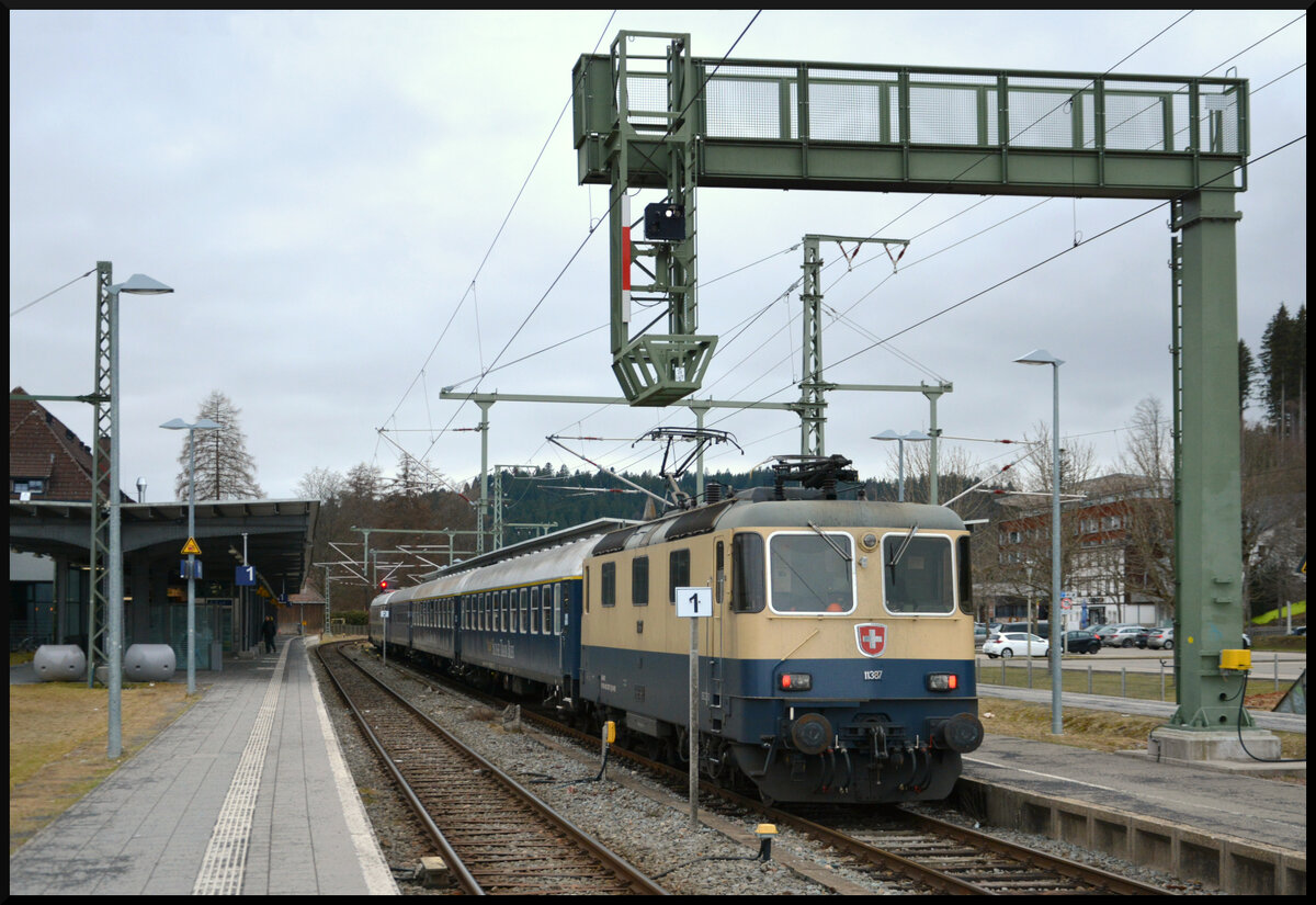 Die erste Einheitselektrolokomotive E41 001 als Museumszug im Bahnhof Titisee. Bespannt mit Personen- und Güterwagen, der IG 3-Seenbahn. Aufgenommen am 20.07.2025 vor der Abfahrt nach Seebrugg. Fabian H
