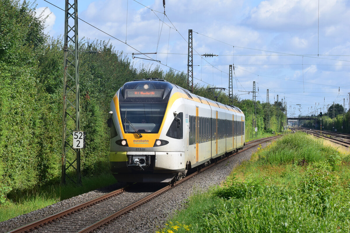Ihre Zeit läuft ab auf dem RE13 ET 7.08 fährt als RE13 durch Düsseldorf Völklinger Straße in Richtung Neuss. Zum Ende des Jahres läuft der Vertrag auf dem RE13 aus und DB Start übernimmt die Linie. Dann sollen hier Flirt 3 eingesetzt werden.