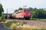 151 161 der Saarrail schiebt hier am 04.08.2019 einen Zug aus mehreren Torpedo-Wagen dem Saarstahl-Werk in Völklingen entgegen.
