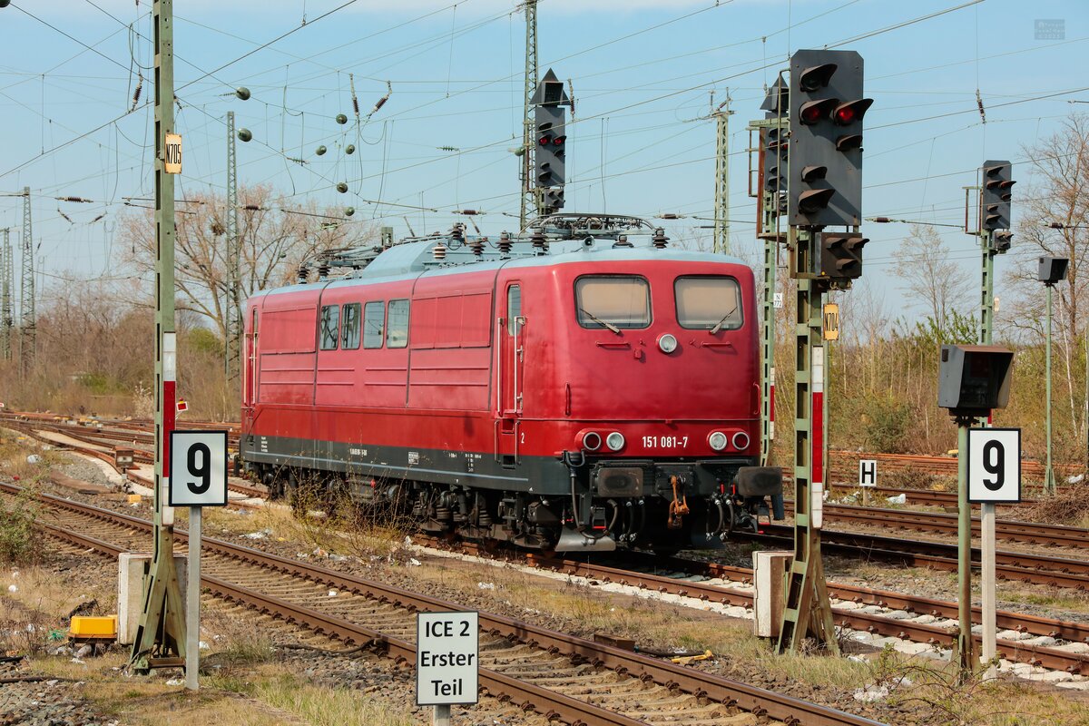 151 161-7 zerrt den langen DGS 91304 aus dem Bahnhof Völklingen hinaus auf die Saarstrecke. (03.06.2025)