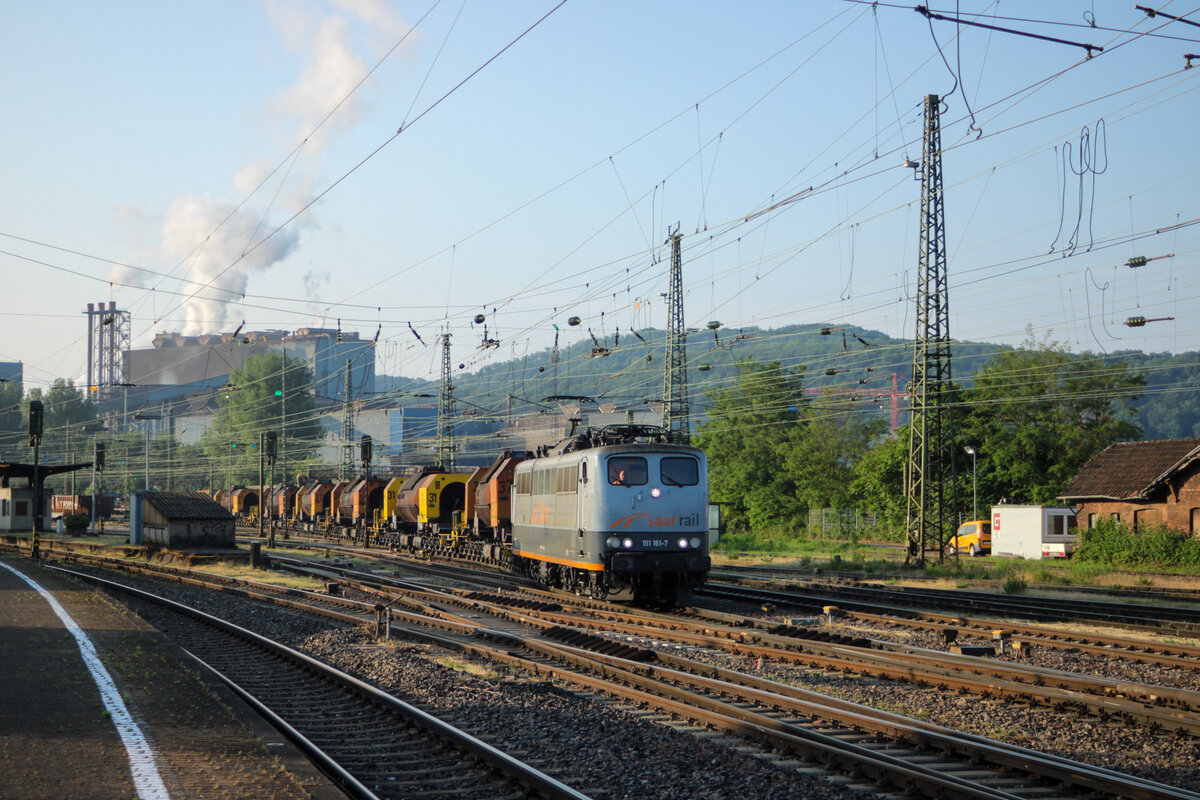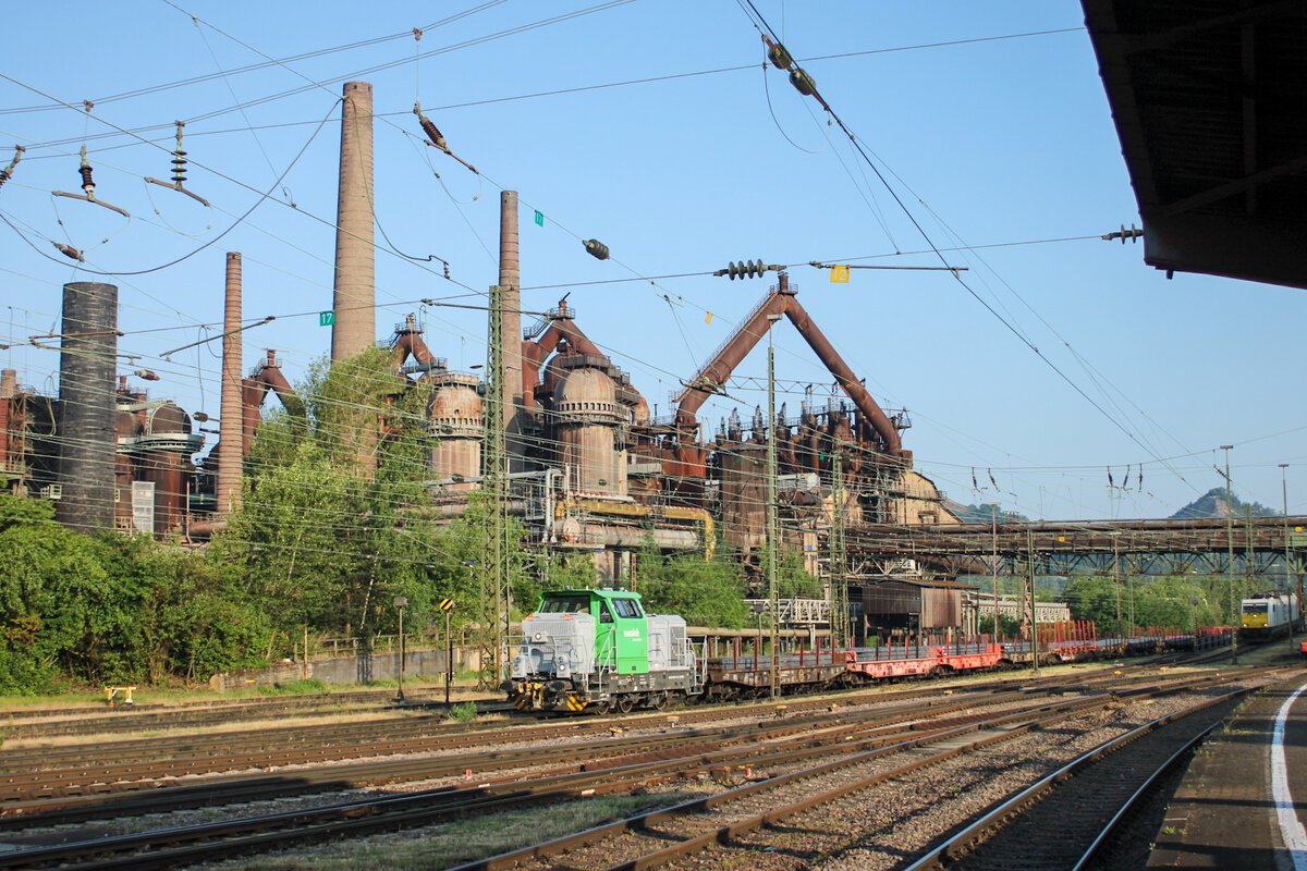 261 306 mit Torpedopfannenwagen im Bahnhof Völklingen.