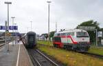 Aufgrund einer Verspätung bleibt der 218 497-6 am 03.07.2024 nur kurze Zeit zum Umsetzen im Bahnhof Westerland, um mit dem IC 2075 die Rückfahrt anzutreten