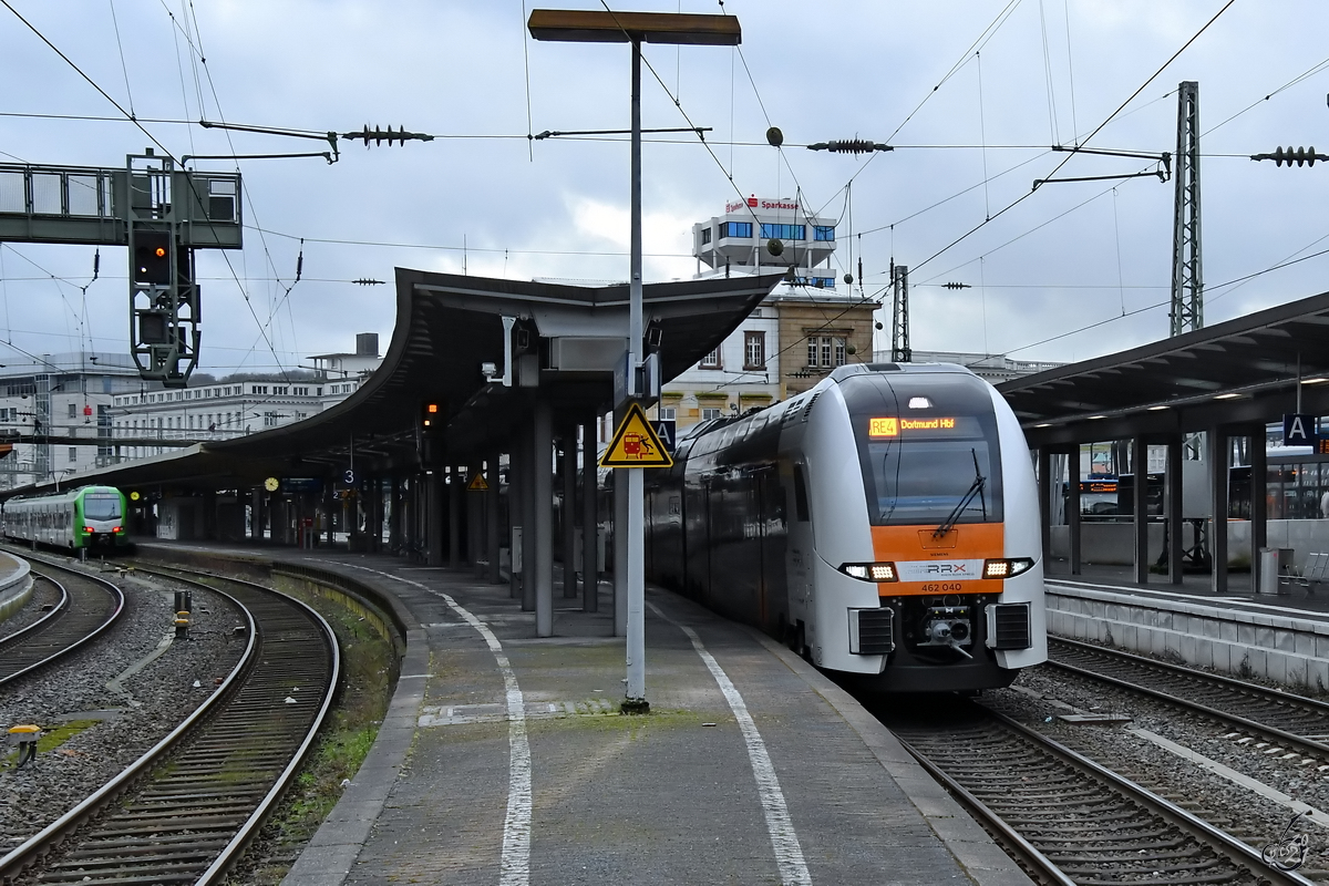 462 040 unterwegs als RE4 nach Dortmund Hbf, hier im Februar 2021 bei der Abfahrt vom Hauptbahnhof Wuppertal.