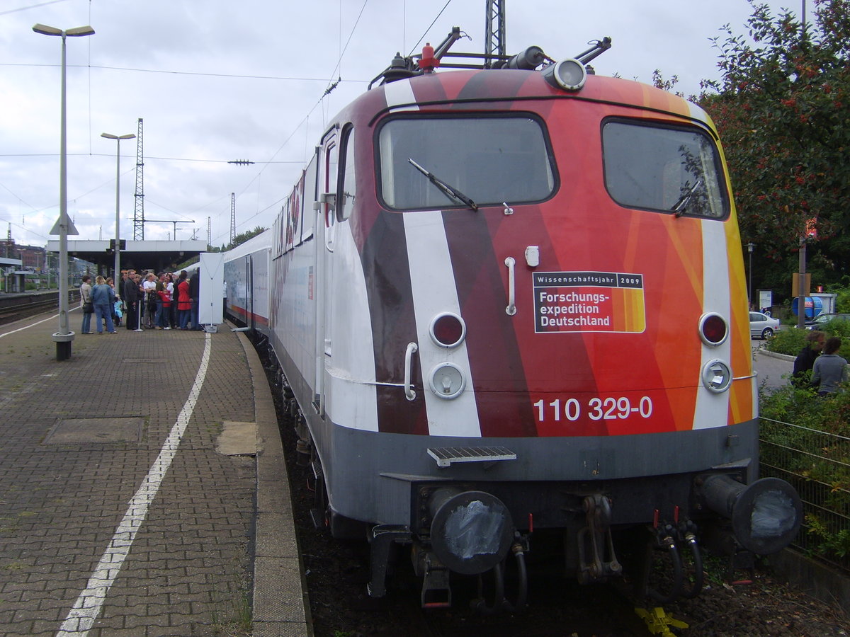 110 329-0 mit dem Science Express in Wuppertal-Oberbarmen am 13.09.09