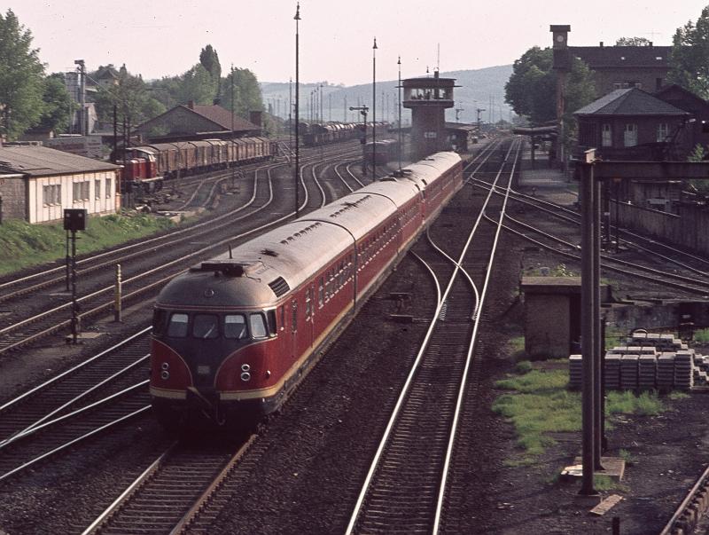 Betriebspause für DB VT 614067 am 16.9.1990 um 19.20 Uhr im Bahnhof Seesen.