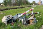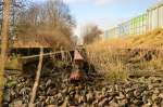 Wenn das Gleis unruhig liegt wird in der Regel solch ein Wanderschutz an den Schienenfuß angeschlagen. Durch die abstehenden Seiten wird mehr Verschiebewiderstand erzeugt und das Gleis liegt ruhiger. Dieser wanderschutz ist für eine S49 (49E5) Schiene.