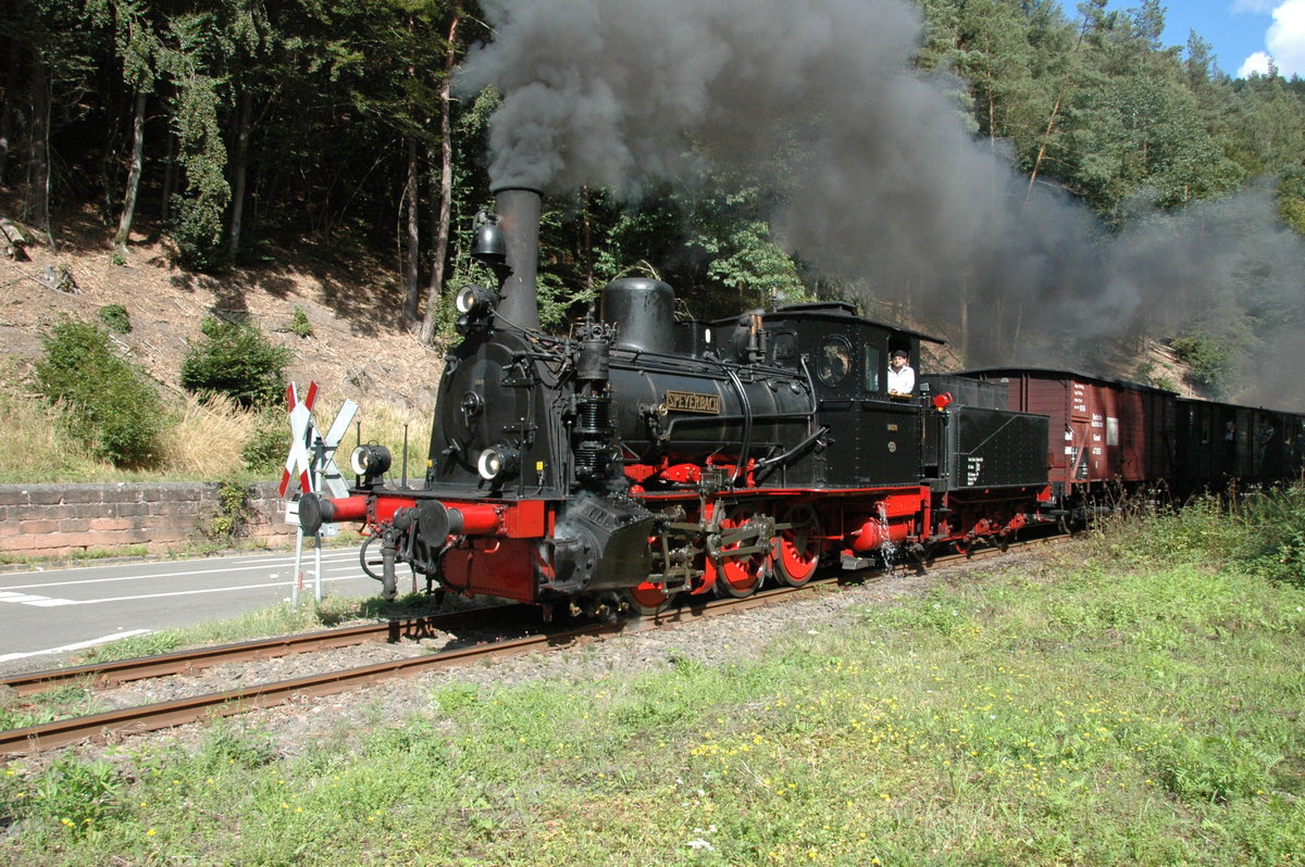 Lokomotive Speyerbach in Erfenstein, der Ort für einen kurzen Fotohalt am 20. Oktober 2018.