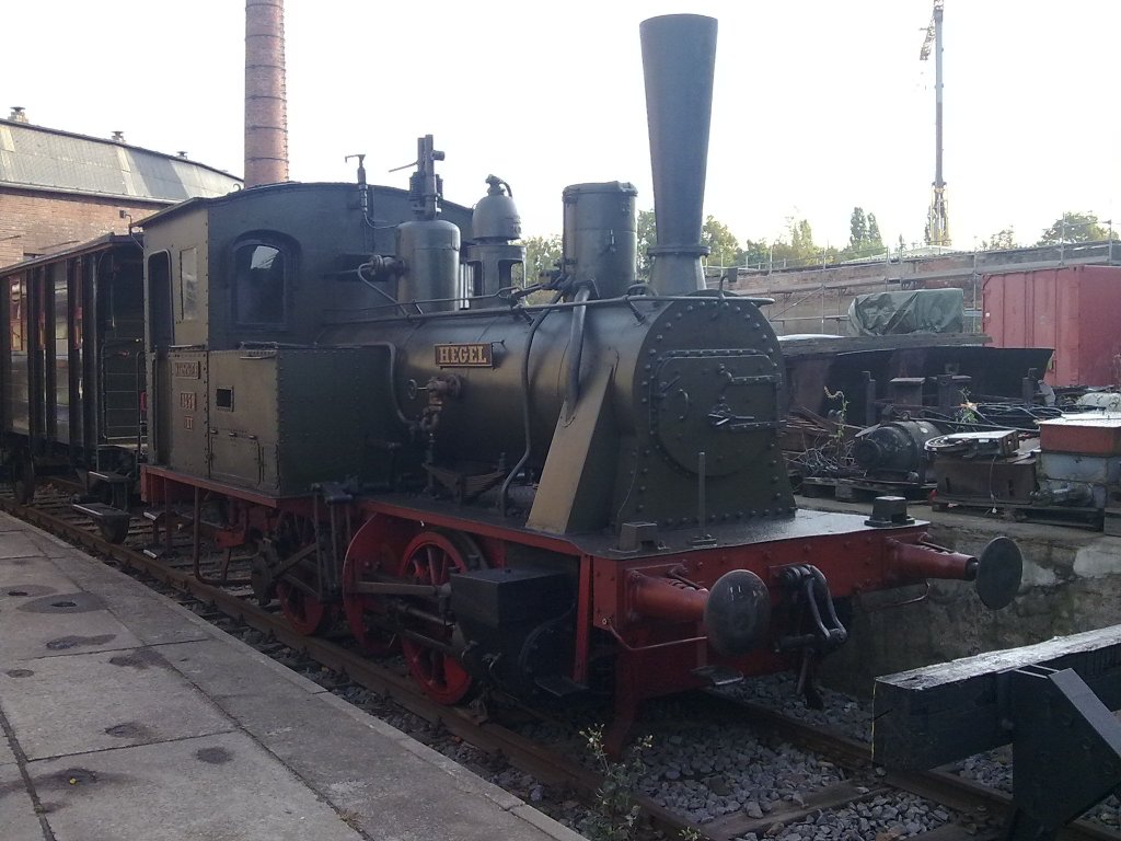 Die Dampflokomotive Nr. 1431  Hegel  - eine sächsische VII T - Anfang April 2017 in Dresden-Altstadt.