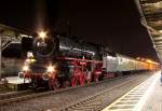 Ende des Dreikönigsdampf auf der Schwarzwaldbahn. 01 150 passiert die Neckarquelle beim Schwenniger Eisstadion auf dem Weg nach Hause. Die badischen Gefielde hat sie zwei Minuten zuvor verlassen. Januar 2013.