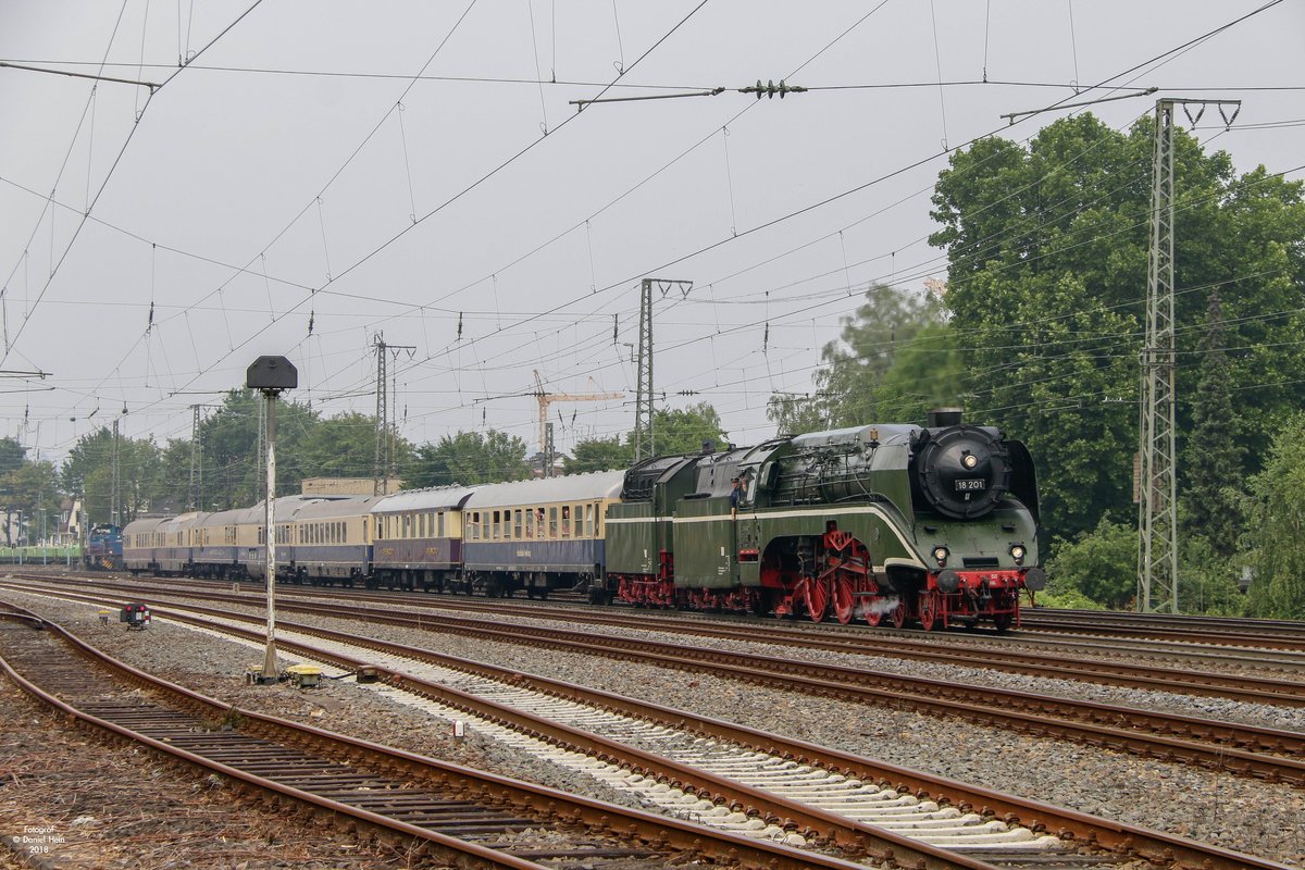 18 201 mit  90 Jahre Rheingold  in Remagen, am 10.06.2018.