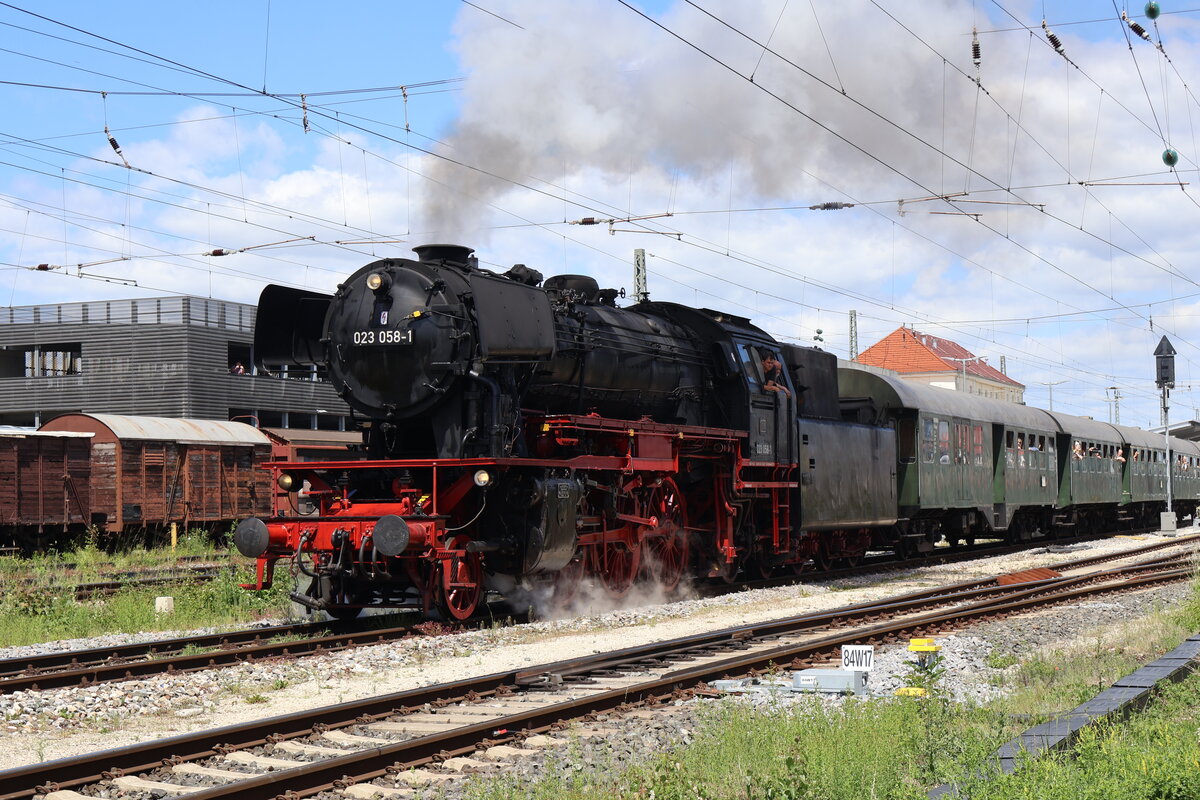 Nördlingen DB-Bahnhof, Akkuzug der DB-Baureihe 515 (515 018-9). Solche Akkuzüge der Baureihe 515/815 sollten nur noch bis 1995 auf DB-Gleisen fahren (Sommer 1984) Frank Nowotny