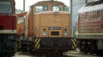 Die mächtige Dampflok 01 005, der erste Prototyp der für die DRG neu entwickelten Einheitslokomotive, steht am 28.08.1990 im Bw. Magdeburg Hbf. Ernst Lauer