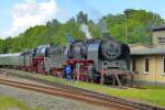 Am Abend des 29.05.2015 fand die Zuführung des Pendelzuges Bergen-Lauterbach für das Bahnhofsfest in Putbus statt. 35 1097-1 und 50 3501 haben den Stralsunder Hbf fast erreicht und passieren in Kürze den Abzweig Srg.