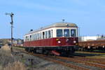 Historisches Eisenbahnwochenende Benndorf–Staßfurt Auch mit einer Motordraisine konnten die Besucher über das Gelände des Lokschuppens Staßfurt tuckern. 🧰 Eisenbahnfreunde Traditionsbahnbetriebswerk Staßfurt e.V. (EFSFT) 🕓 1.10.2022 | 15:02 Uhr