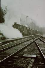 096 (Plandampf im Thüringer Wald Rennsteig & Lobenstein 18.- 21. März 1993 )durchfahrend Bf.-Suhl-Heinrichs 44 1093-2 mit D 2500 von Meiningen nach Arnstadt aufnahme S-w Agfa Iso 100 mit Kamera Minolta X-300