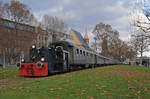 Es wurde schon düster, als die Würzburger 52 7409 mit dem DZ 93558 Enspel passiert (28.02.2026)