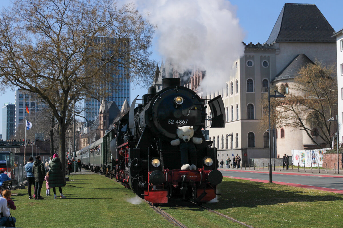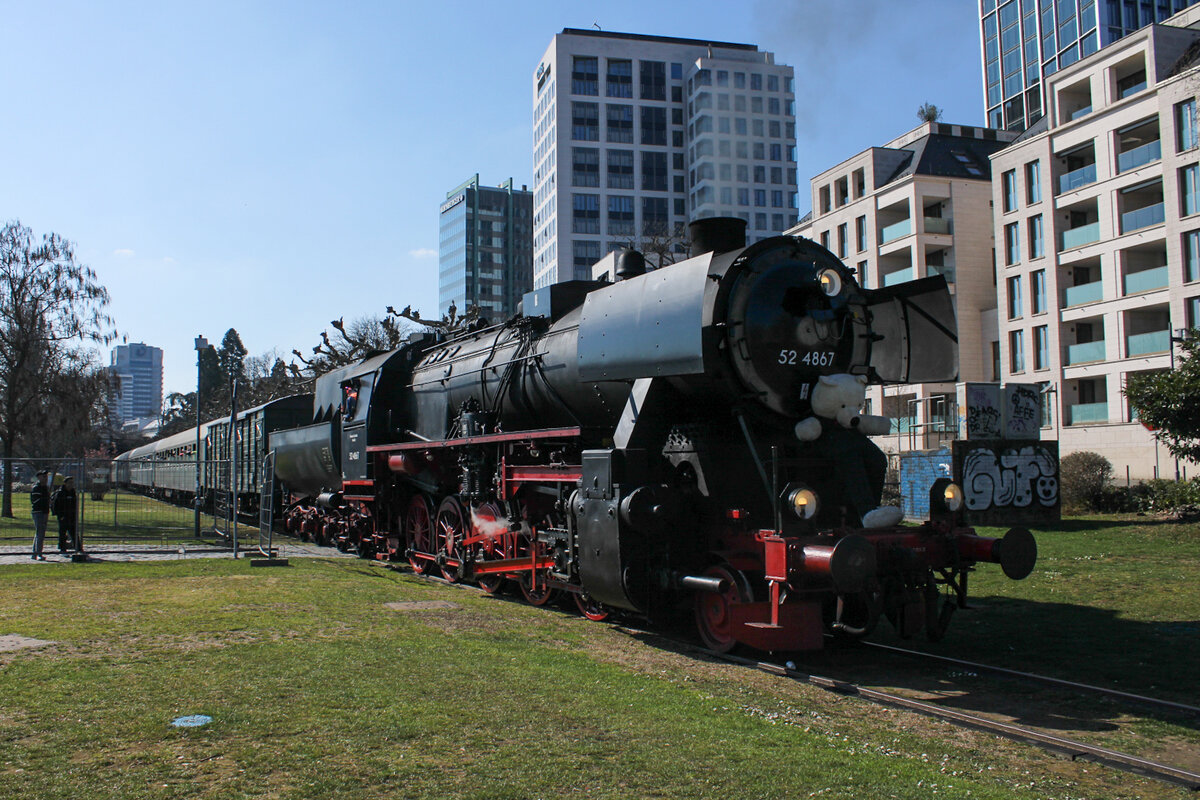 Die ehemalige Kriegslok 52 7409 (WLF - Wiener Lokomotivfabrik Floridsdorf, Baujahr: 1943, Fabriknummer: 16862) stampfte am 01.03.2026 mit Volldampf und dem Sonderzug DZ 93512 Darmstadt-Kranichstein - Wertheim die Steigung bei Reichenberg/Unterfranken herauf.