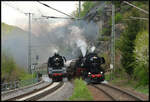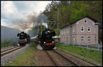 DB 147 551-6 steht mit ihrem Intercity 2-Ausstellungzug zum Bahnhofsfest in Magdeburg während nebenan LDK 051 079-6 (52 8079-7) mit ihrem Sonderzug nach Leipzig wartet. (09.09.2023)