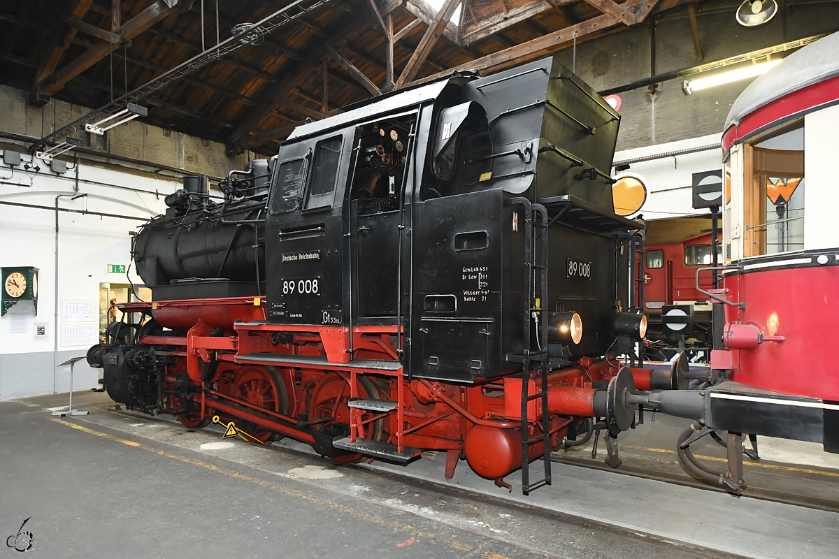 89 008 Eigentümer DB-Museum Nürnberg stand am 29.09.2018 zu den Schweriner Modellbahn-Tagen draußen zur Besichtigung