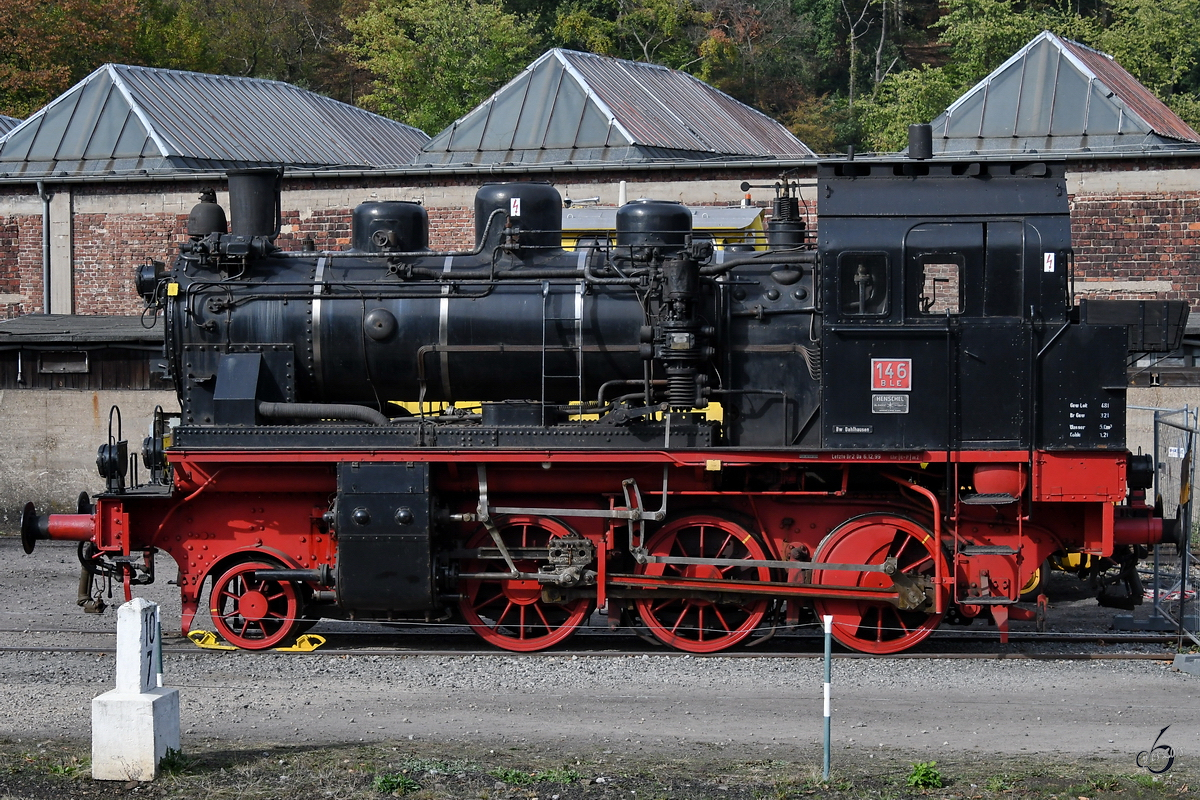 Lok 146 der ehemaligen BLE aus der Sammlung des Eisenbahnmuseums Bochum ausgestellt auf dem Steeler Weihnachtsmarkt (28.11.2023)