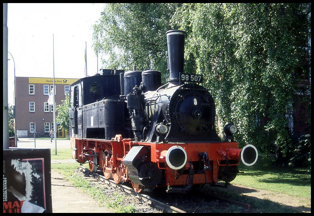 Die 98 507 (PtL 3/4) am 04.08.2008 am Bahnhofsvorplatz in Ingolstadt.