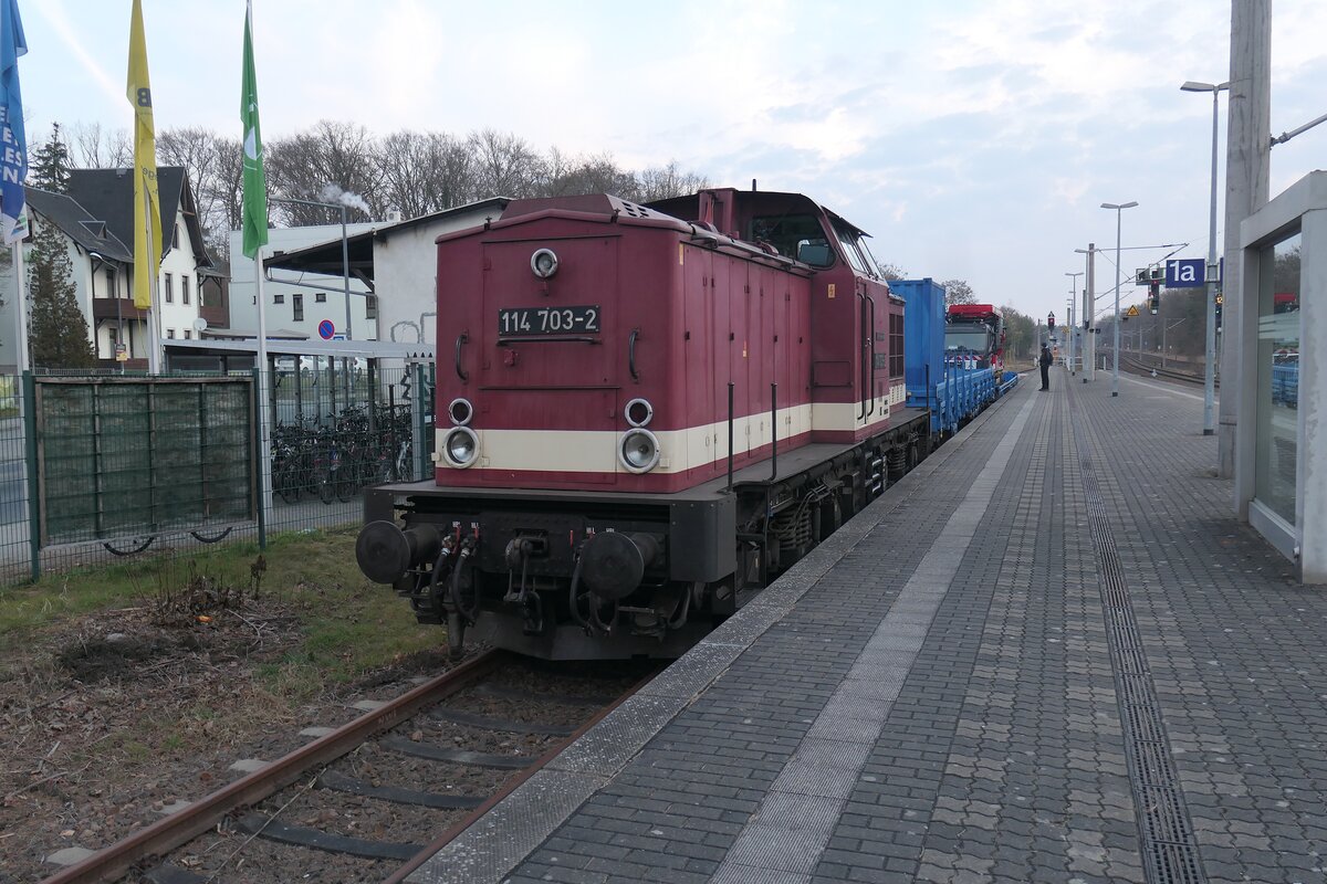 Die Press 228 719 mit leeren Containertragwagen unterwegs auf dem Viadukt in Oberthölau bei Marktredwitz. Die Containerwagen wurden am 05.03.2026 dann weiter nach Cheb gefahren. Andreas Schreiber