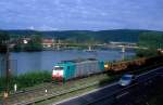 203 166-4 (202 412-3 | 112 412-2 | 110 412-4 | DR V 100.1) begegnet im Hp Magdeburg Herrenkrug der 186 128-5, die mit ihren Containern kurz zum Stehen gekommen ist.