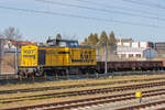 D-NRS 203 107-8 (V 100 005) fuhr am 01.12.2025 mit einem Sdggmrss (CH-TXL 37 85 4956 457-3) zum Lübeck-Travemünder-Skandinavienkai (ALSK). Hier im Lübecker Hbf (AL).