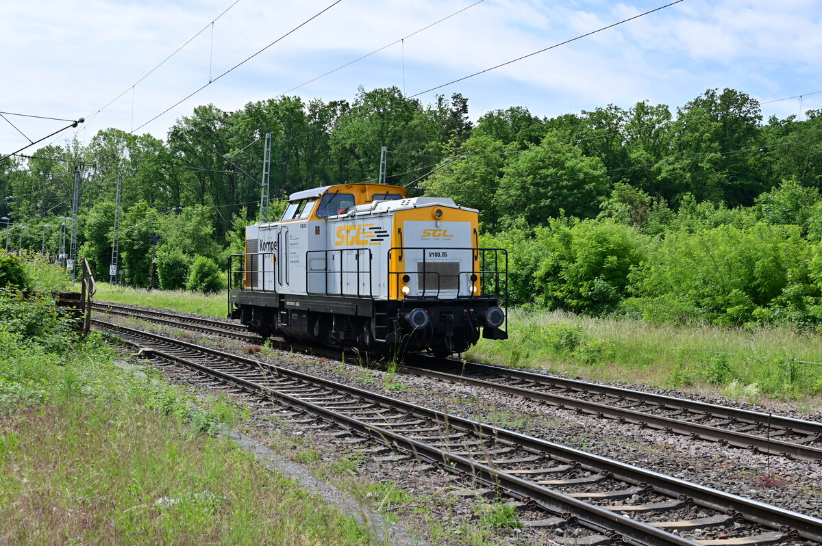 LZ aus Richtung Mühlacker kommend, hier Maulbronn West durchfahrend ist die SGL V180.05 alias 1203 161-5 in Richtung Bretten unterwegs. 31.05.2022