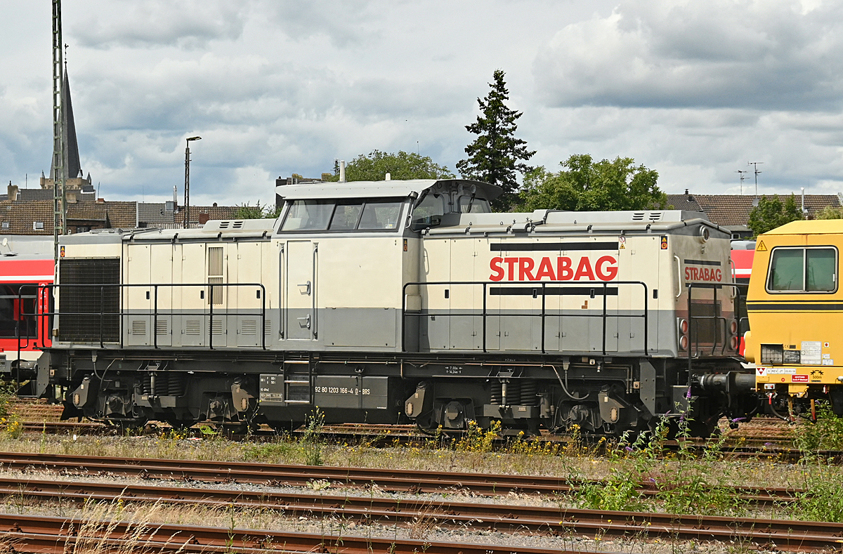 1203 166-4 der STRABAG vor Bauzug in Euskirchen - 06.07.2024