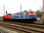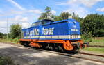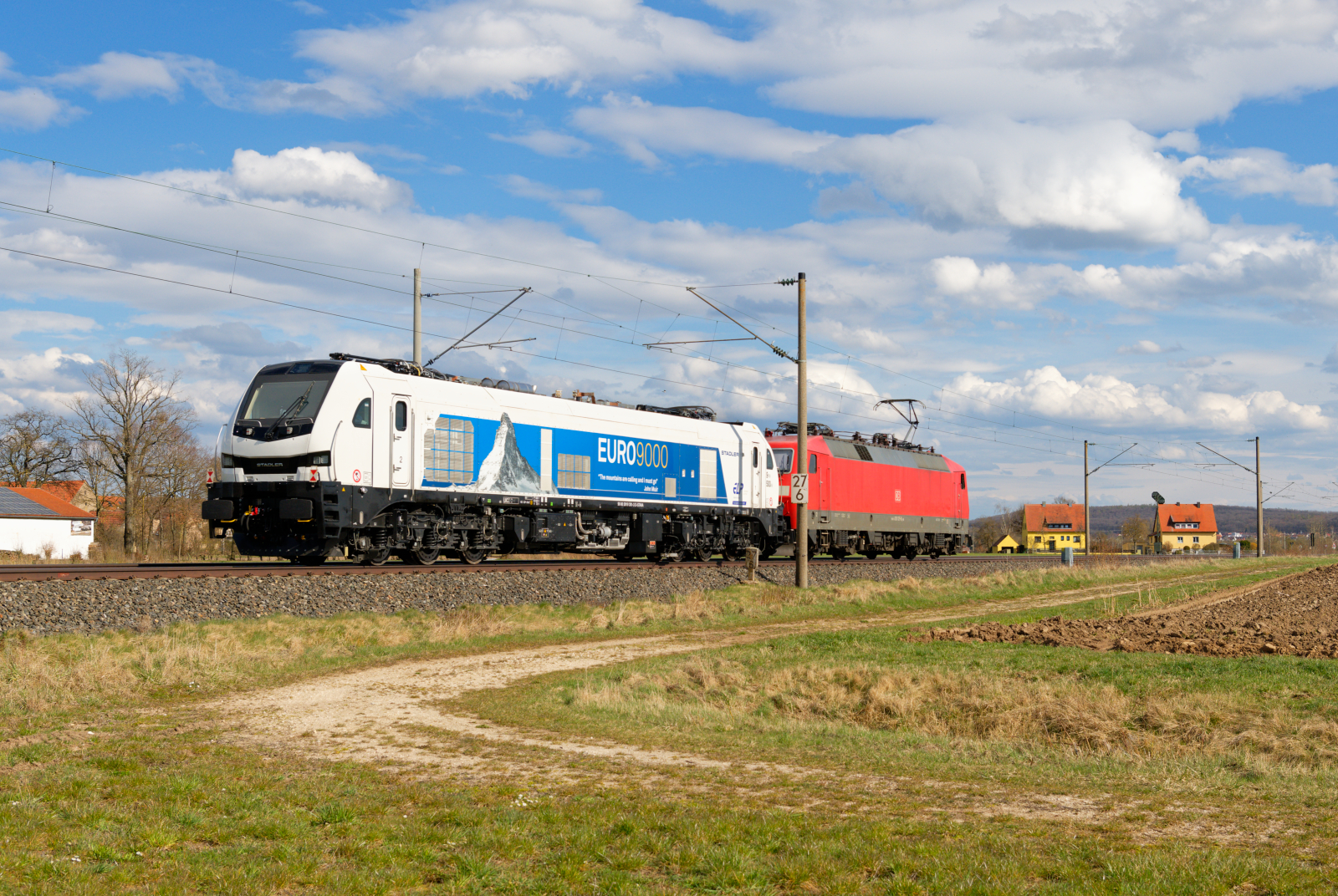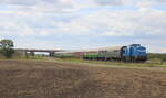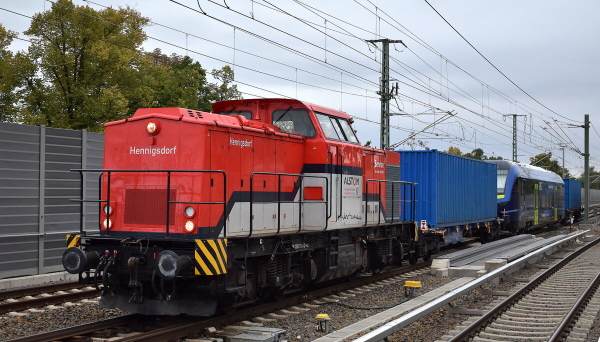 Stadler Pankow GmbH, Berlin mit der angemieteten "203 111-0", Name: "Hennigsdorf" [Einsatz im Service- und Inbetriebnahmezentrum Velten] bei einer Werksfahrt zum Berliner Stadler Werk mit einem nagelneuen Brennstoffzellen Triebzug, dem STADLER Typ "RSZERO" (NVR: ""90 80 0550 000-8 D-STAP") am 07.10.24 Höhe Bahnhof Berlin Karow.
