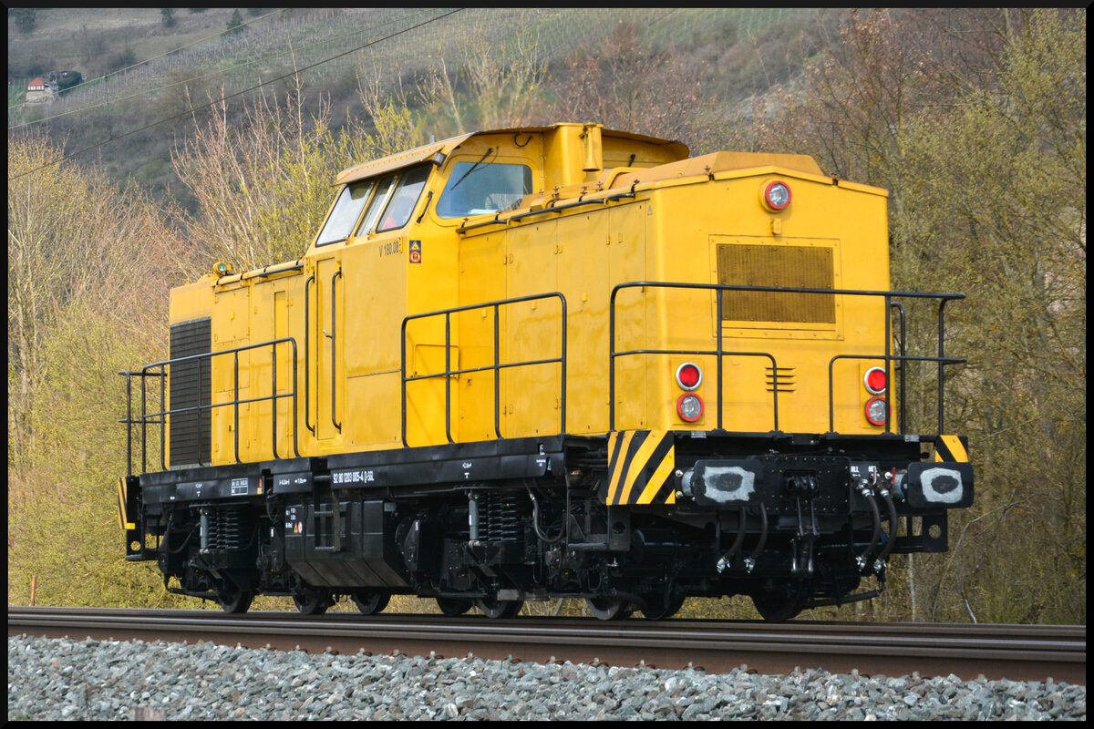 Frisch aufpoliert: Gerade mal vier Tage nach dem Revisionsdatum (18.03.2026) ist die Diesellok SGL V 180.8 (NVR: 92 80 1203 005-4 D-SGL) am 22.03.2026 Lz im Maintal zu neuen Aufgaben gen Norden unterwegs. Matthias Kümmel