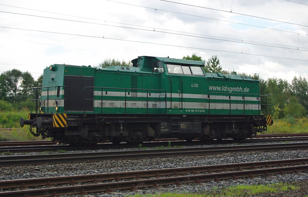 D-NRS 203 107-8 (V 100 005) fuhr am 01.12.2025 mit einem Sdggmrss (CH-TXL 37 85 4956 457-3) zum Lübeck-Travemünder-Skandinavienkai (ALSK). Hier im Lübecker Hbf (AL).