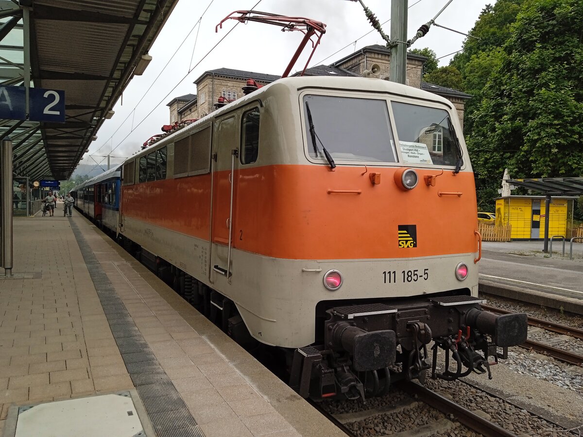 SVG 111 185 -5 mit dem Freizeitexpress Bodensee 2 auf dem Weg von Stuttgart nach Konstanz am 17.8.25 in Rottweil