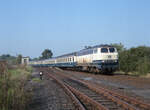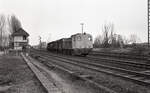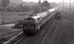 DB 212 051-7 mit Zug E-3779 (Nijmegen - Kleve) beim Grenzgraben bei Kranenburg am 30.04.1989. Hier befindet sich auch das Vorsignal vom Bahnhof Kranenburg. Scanbild 97275, Agfachrome CT100.