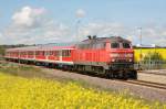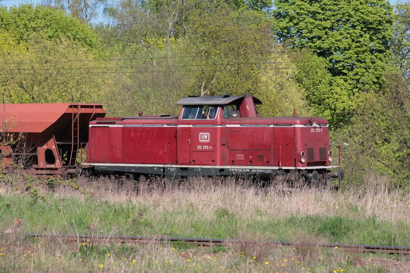 212 407 der EfW-Verkehrsgesellschaft zieht einen Schotterzug durch Schwerin. 20.04.2009