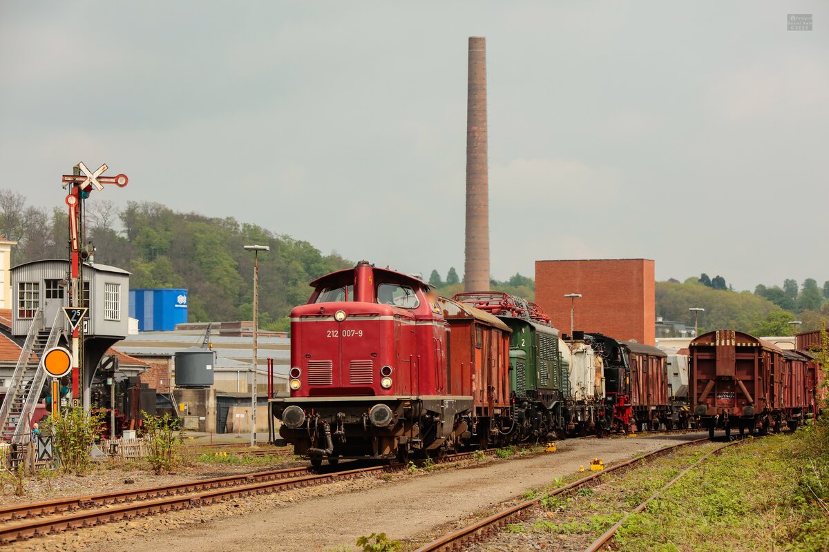 212 054-1 der EGP durchfährt am Abend des 25.05.09 den Bahnhof Schönefeld-Flughafen. Das blaue Farbkleid steht der guten, alten V100 meines Erachtens sehr gut.