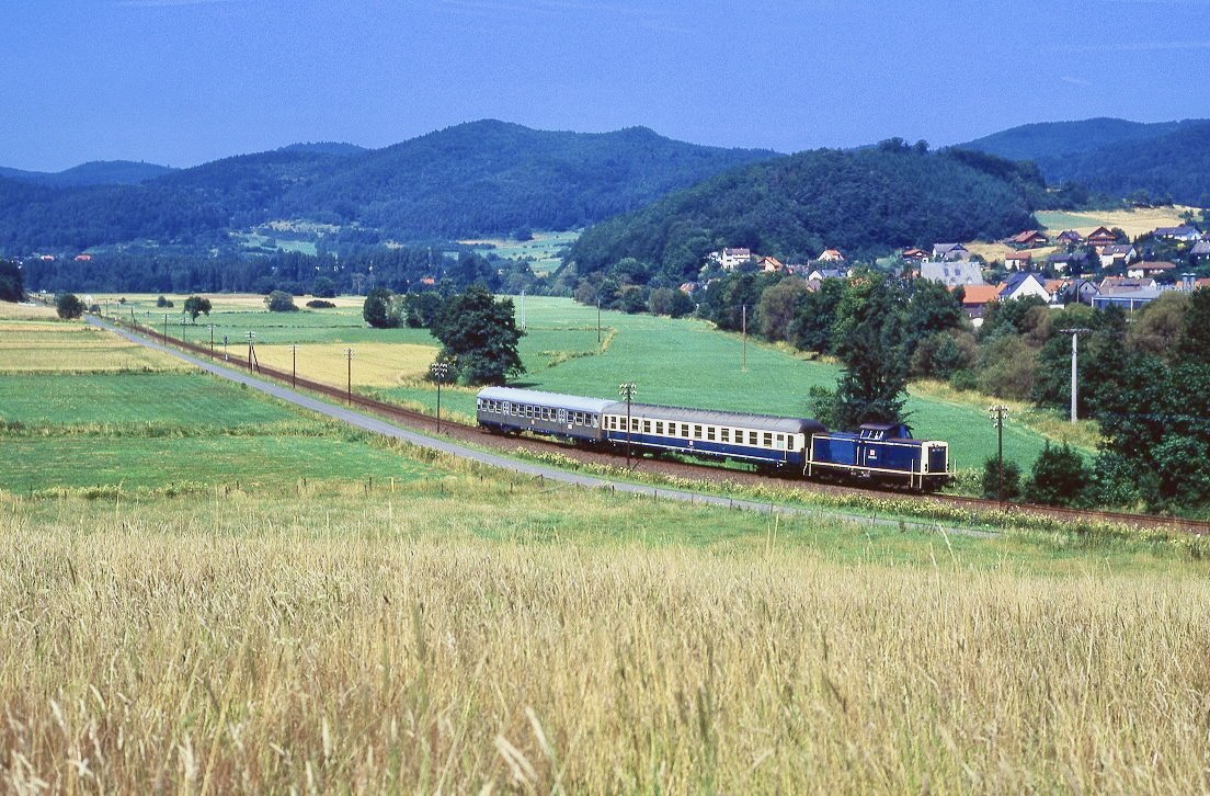 Nach schnellem Standortwechsel kam dieser Zug auch schon wieder aus Sontra zurück. Nun, logischerweise, mit 212 084-8 an der Spitze. Aufgenommenen am 01.05.2010 in Berneburg.
