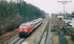 Der Blick auf Bad Windsheim nach Osten am 4.5.94: 212 035 wartet in Gleis 2 auf den Gegenzug aus Steinach. Links und rechts der beiden Hauptgleise gab es noch viele Rangiermöglichkeiten...