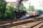 215 122 in Meiningen, auf dem Nachbargleis läuft der Tender der 41 360 als Vorratsreserve am Sonderzug nach Düsseldorf mit - 04.09.2004