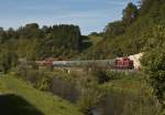 V200 033 und V100 1041 mit dem DPE 36643 (Hintschingen-Titisee) "Rhein Nostalgie Express" am 11. September 2010 in Döggingen.
