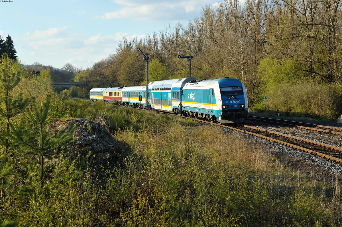 223 068 mit dem ALX84121 von Hof Hbf nach München Hbf bei der Durchfahrt bei Reuth b.