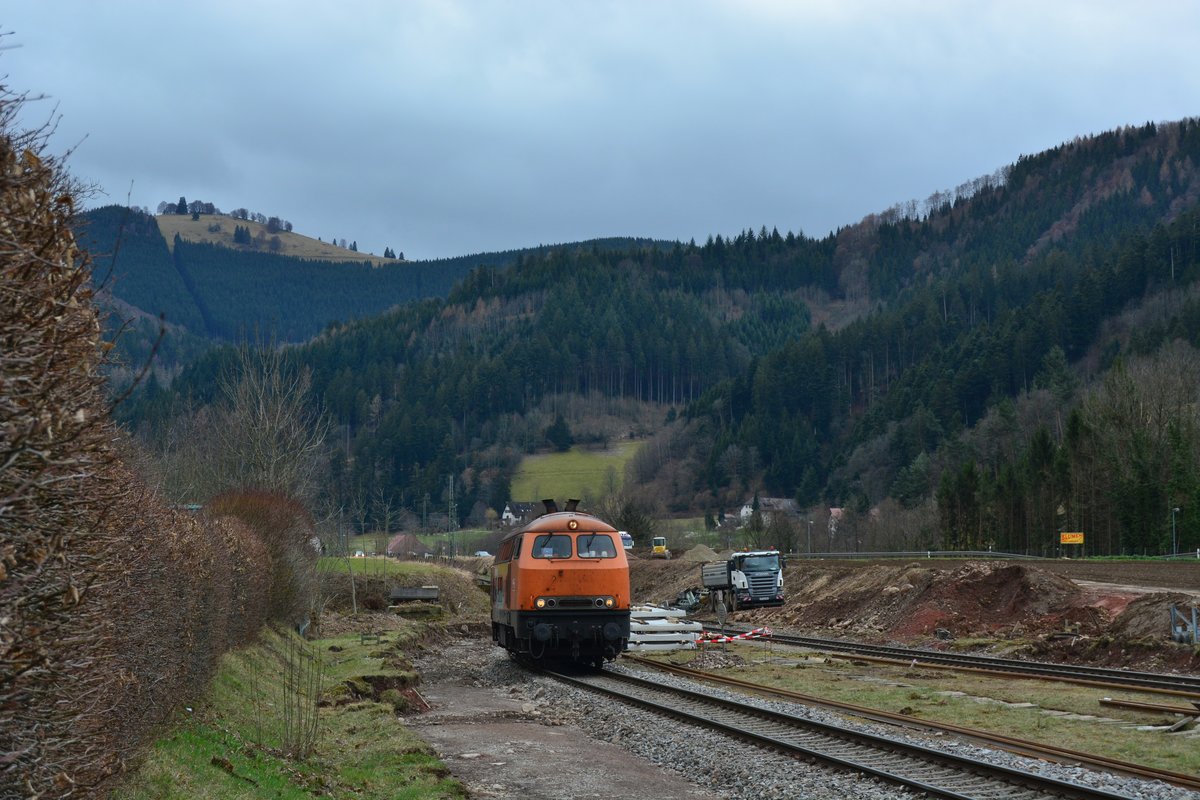 225 099-1 steht im Bahnhof Himmelreich während der Großbaustelle abgestellt und wartet auf Aufgaben.