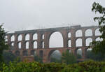 Gerade winzig wirkt der kleine 650er auf der größten Ziegelsteinbrücke der Welt, der Göltzschtalbrücke bei Netzschkau. Hier ist er auf den Weg in Richtung Reichenbach.