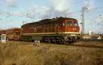 Etwas "mitgenommen" sieht die DR-Diesellok 131 066 am 14.08.1992 aus, aufgenommen im Rahmen einer persönlichen Führung mit einem Lokführer durch das Bw. Halle G.