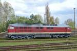 Etwas  mitgenommen  sieht die DR-Diesellok 131 066 am 14.08.1992 aus, aufgenommen im Rahmen einer persönlichen Führung mit einem Lokführer durch das Bw. Halle G.