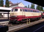 In der Abstellgruppe des Railion-Werkes Halle/Saale standen am 14.07.07 Loks der Baureihen 232, 233 und 155 sowie eine 140. Hinter der 233er steht meiner Meinung nach eine Ludmilla mit orientroter Lackierung.