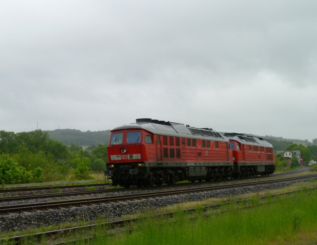 232 673 und 232 347 fahren am 27.05.13 Durch Weischlitz Richtung Plauen/V.